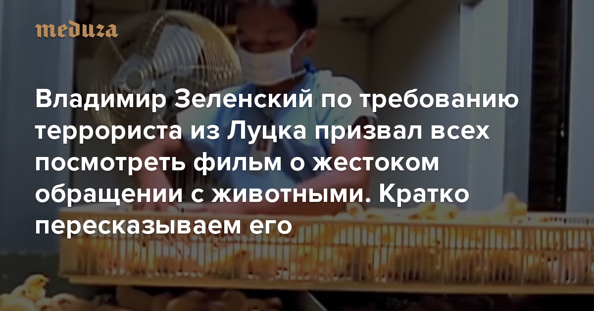 21 июля террорист Максим Кривош, захвативший в Луцке автобус с людьми, потребовал у президента Украины Владимира Зеленского, чтобы он призвал всех посмотреть фильм «Земляне» 2005 года. Зеленский сделал это. После этого фильм быстро набрал популярность — сейчас он занимает первое место в списке самых популярных фильмов и сериалов на «Кинопоиске» (рейтинг составлен на основе посещаемости страниц). Этот фильм режиссера Шона Монсона рассказывает о жестоком обращении с животными — в нем показано множество шокирующих сцен, где животных мучают или убивают. Закадровый текст читает актер Хоакин Феникс, в саундтреке использована музыка Моби. Для тех, кто не хочет смотреть этот фильм, но хочет узнать, что в нем происходит, «Медуза» кратко его пересказала.