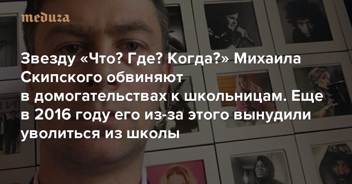 41-летнего участника игры «Что? Где? Когда?», петербургского учителя Михаила Скипского обвиняют в домогательствах к школьницам. По словам девушек, он занимался этим много лет. «Медузе» удалось выяснить, что в 2016 году об одном из случаев стало известно коллегам Скипского — и они вынудили его уволиться из петербургской школы. Однако тот продолжил работать с детьми.