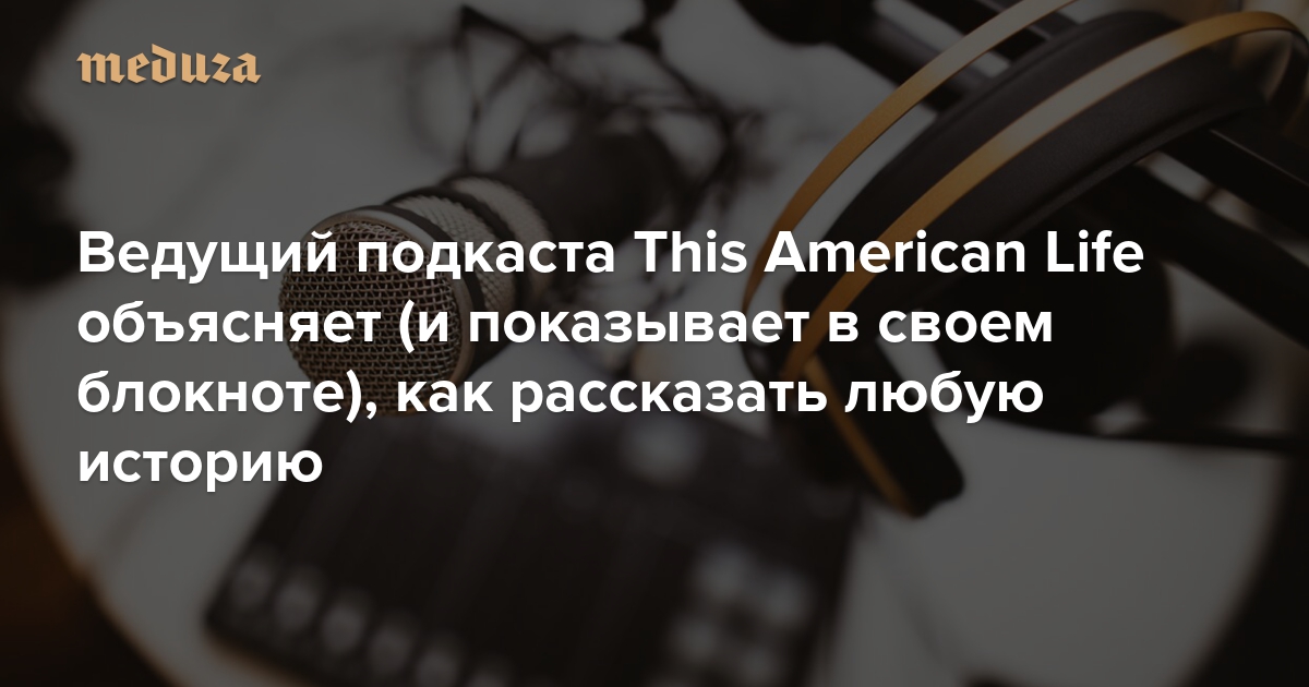 В издательстве Individuum в переводе Дмитрия Голубовского вышла книга «Пошумим» Эрика Нюзума — американского продюсера, возглавлявшего подразделение подкастов на радио NPR и в Audible (принадлежит Amazon), и владельца собственной подкастинговой компании Magnificent Noise. Нюзум рассказывает, как сделать запоминающийся подкаст: найти сюжеты и интонацию, организовать запись и анализировать статистику. С разрешения издательства «Медуза» публикует фрагмент книги, в котором известный американский радиоведущий Айра Гласс объясняет, как ему удается быстро рассказывать любые истории на примере заметок в своем блокноте.