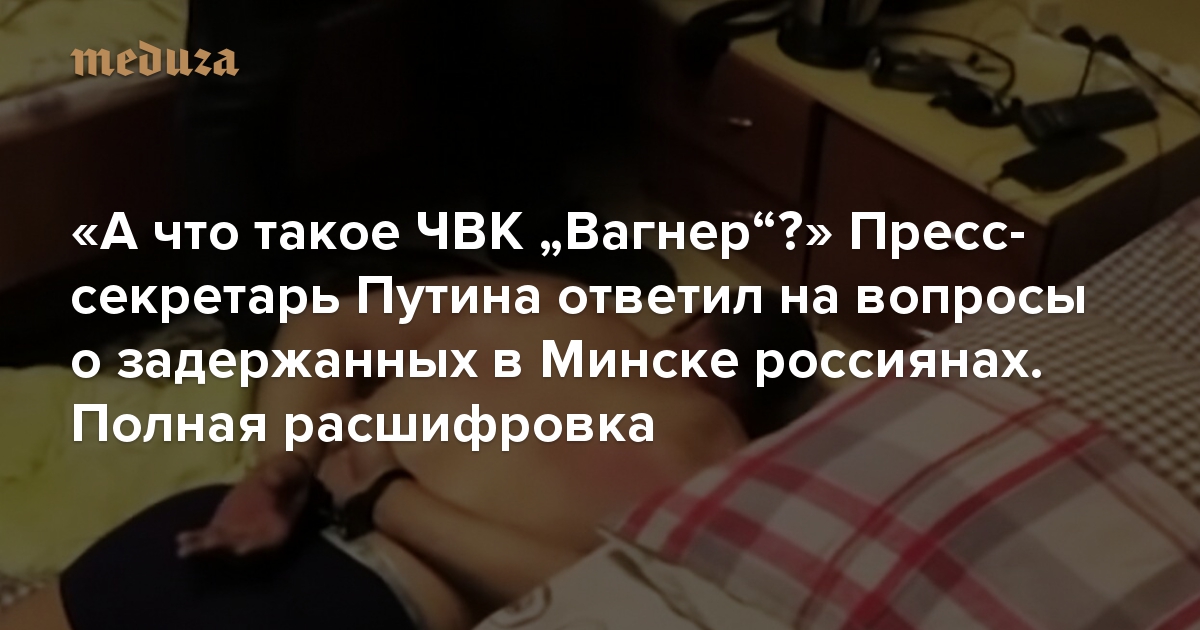 «А что такое ЧВК „Вагнер“?» Пресс-секретарь Путина ответил на вопросы о задержанных в Минске россиянах. Полная расшифровка