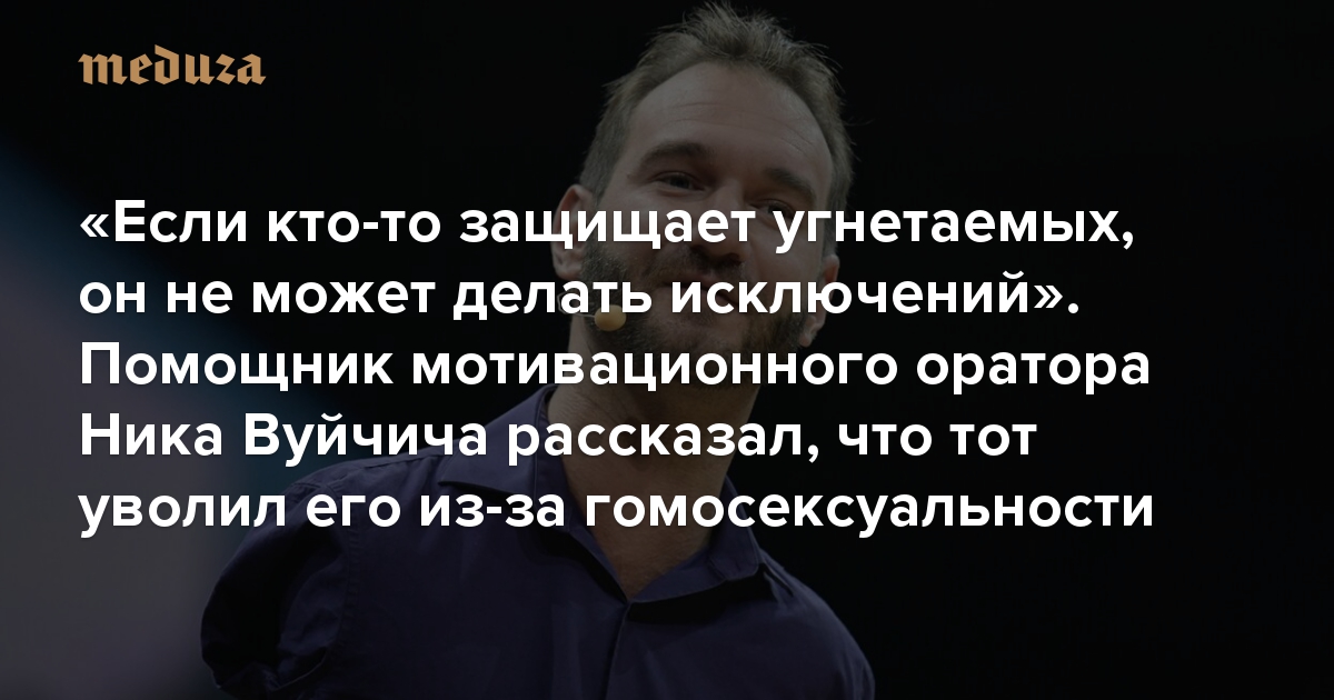 «Если кто-то защищает угнетаемых, он не может делать исключений». Помощник мотивационного оратора Ника Вуйчича рассказал, что тот уволил его из-за гомосексуальности