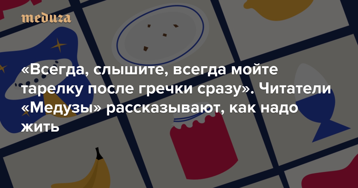 «Всегда, слышите, всегда мойте тарелку после гречки сразу». Читатели «Медузы» рассказывают, как надо жить Самые полезные советы