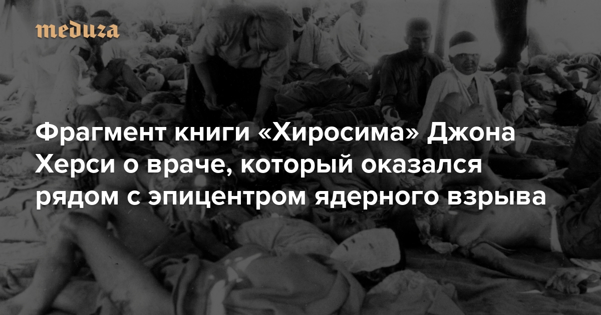 6 августа 75 лет назад впервые применили ядерное оружие: американский бомбардировщик «Энола Гэй» сбросил атомную бомбу на Хиросиму. Через год после бомбардировки военный репортер Джон Херси отправился в Японию, чтобы поговорить с выжившими. Шесть таких историй напечатали в The New Yorker — это был первый и последний случай, когда один материал занимал целый номер. В 1985 году Херси написал статью, в которой рассказал, как сложились судьбы шести героев спустя эти годы. Полный текст репортажа впервые выходит в издательстве Individuum и на сервисе Bookmate в виде книги. «Медуза» публикует ее отрывок про врача Теруфуми Сасаки, который оказался одним из немногих выживших врачей рядом с эпицентром ядерного взрыва.