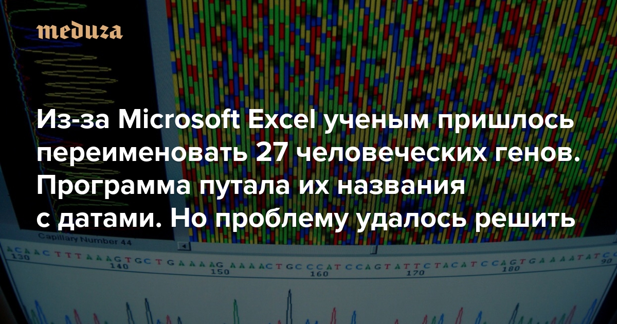 Компания Microsoft 19 октября представила обновление программы Excel, которое должно окончательно решить проблему, известную как минимум с 2004 года: превращение названий некоторых генов в даты в ходе их принудительного форматирования. Аналогичную конвертацию могут проходить не только гены, но и некоторые цифробуквенные коды.