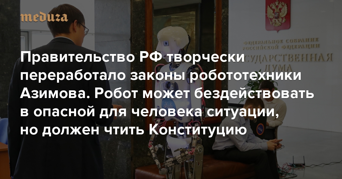 Правительство РФ творчески переработало законы робототехники Азимова. Робот может бездействовать в опасной для человека ситуации, но должен чтить Конституцию