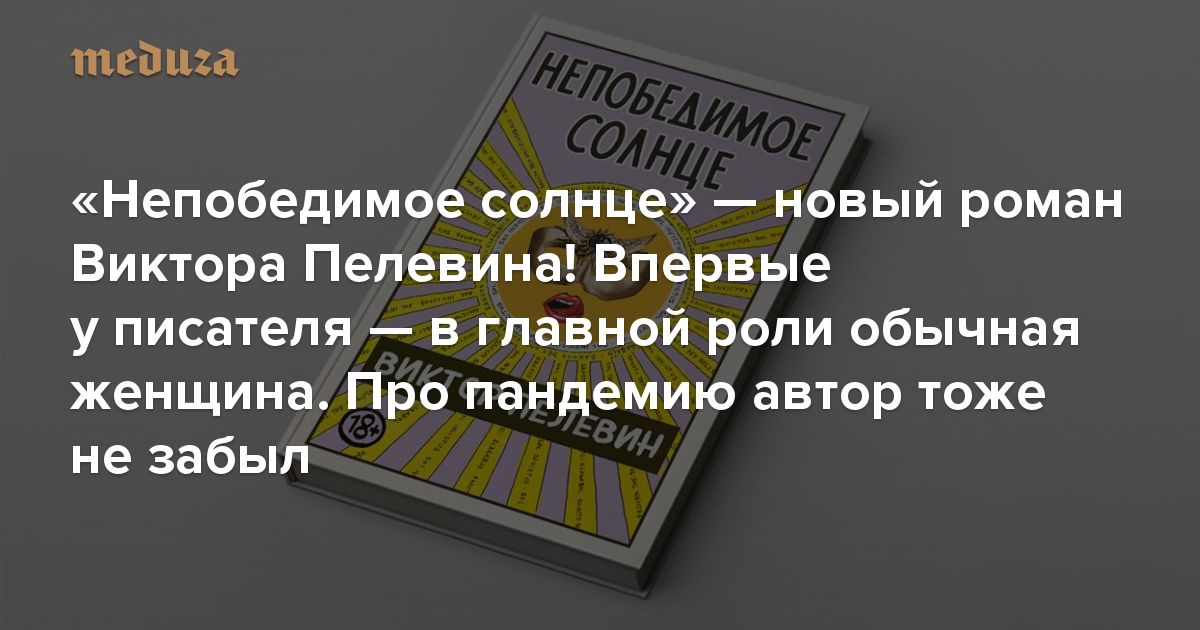 27 августа выходит новый роман Виктора Пелевина «Непобедимое солнце». Литературный критик Галина Юзефович рассказывает, как автор попытался уместить и осмыслить в своей новой книге и главное событие 2020 года — пандемию, — и, что более неожиданно, профеминистский пафос. И хотя в 700-страничном романе есть эпизоды, без которых можно было бы обойтись, эта книга Пелевина вновь сможет удивить читателя.