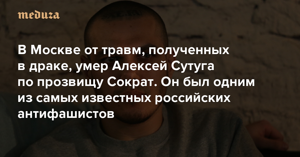 В Москве от травм, полученных в драке, умер Алексей Сутуга по прозвищу Сократ. Он был одним из самых известных российских антифашистов