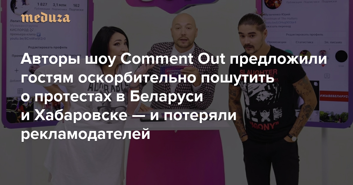 «Обидеть целый народ ради шутки для ютьюба?» Авторы шоу Comment Out предложили гостям оскорбительно пошутить о протестах в Беларуси и Хабаровске — и потеряли рекламодателей