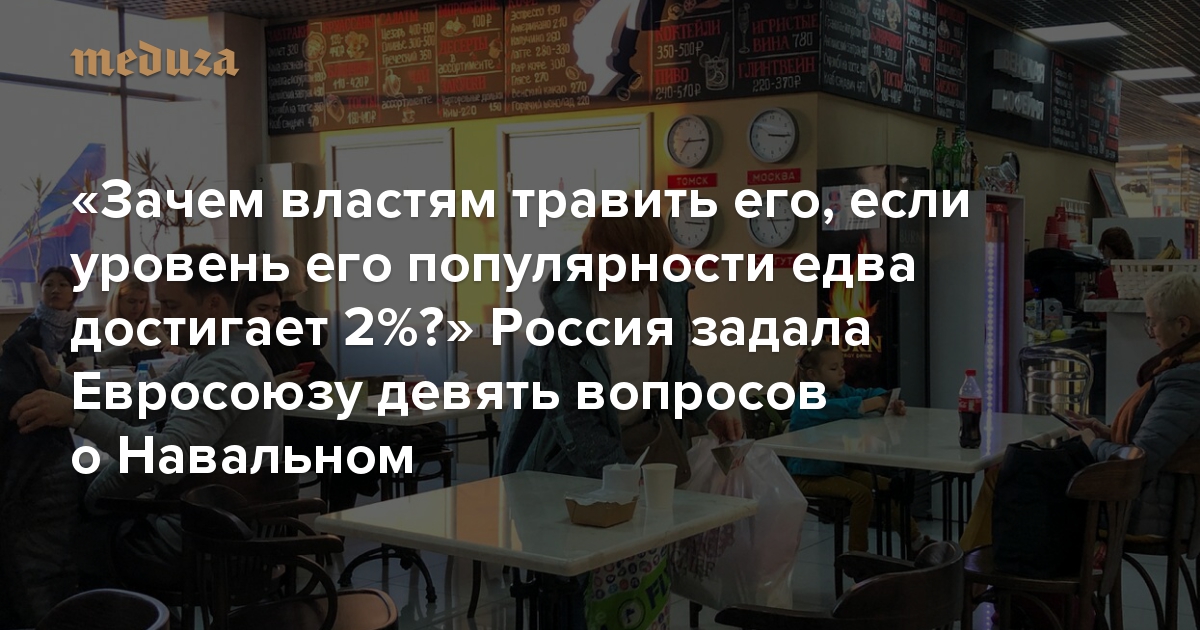 «Зачем властям травить его, если уровень его популярности едва достигает 2%?» Россия задала Евросоюзу девять вопросов о Навальном