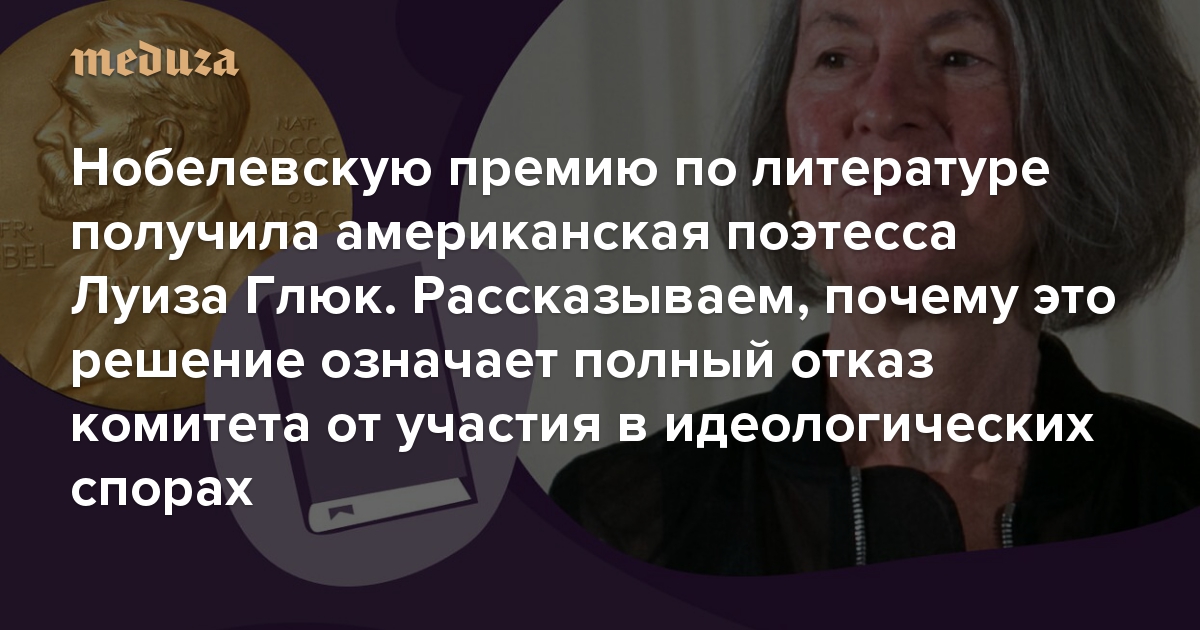 Нобелевский комитет объявил лауреата премии по литературе 2020 года — им стала американская поэтесса Луиза Глюк. Ее наградили «за безошибочно узнаваемый поэтический голос, который своей строгой красотой делает индивидуальное существование универсальным». Литературный критик «Медузы» Галина Юзефович рассказывает, почему награждение живого классика и одного из самых титулованных поэтов в США говорит о нежелании Нобелевского комитета занимать чью-либо сторону в идеологических спорах.