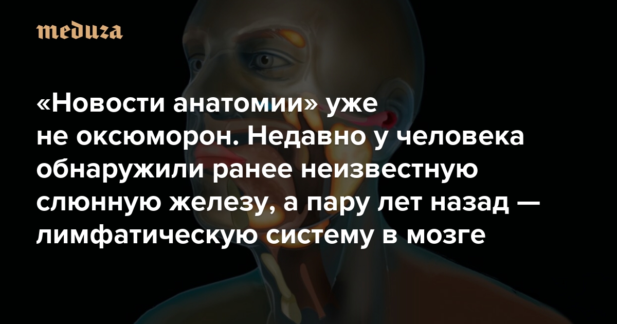 «Новости анатомии» уже не оксюморон Недавно у человека обнаружили ранее неизвестную слюнную железу, а пару лет назад — лимфатическую систему в мозге