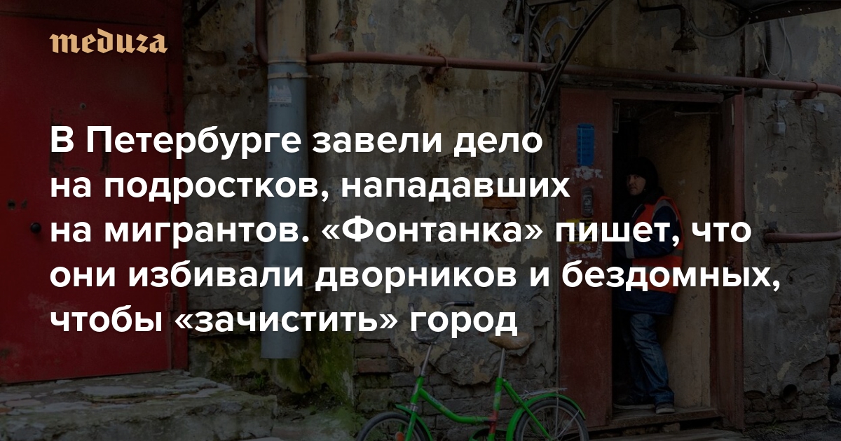 В Петербурге завели дело на подростков, нападавших на мигрантов. «Фонтанка» пишет, что они избивали дворников и бездомных, чтобы «зачистить» город