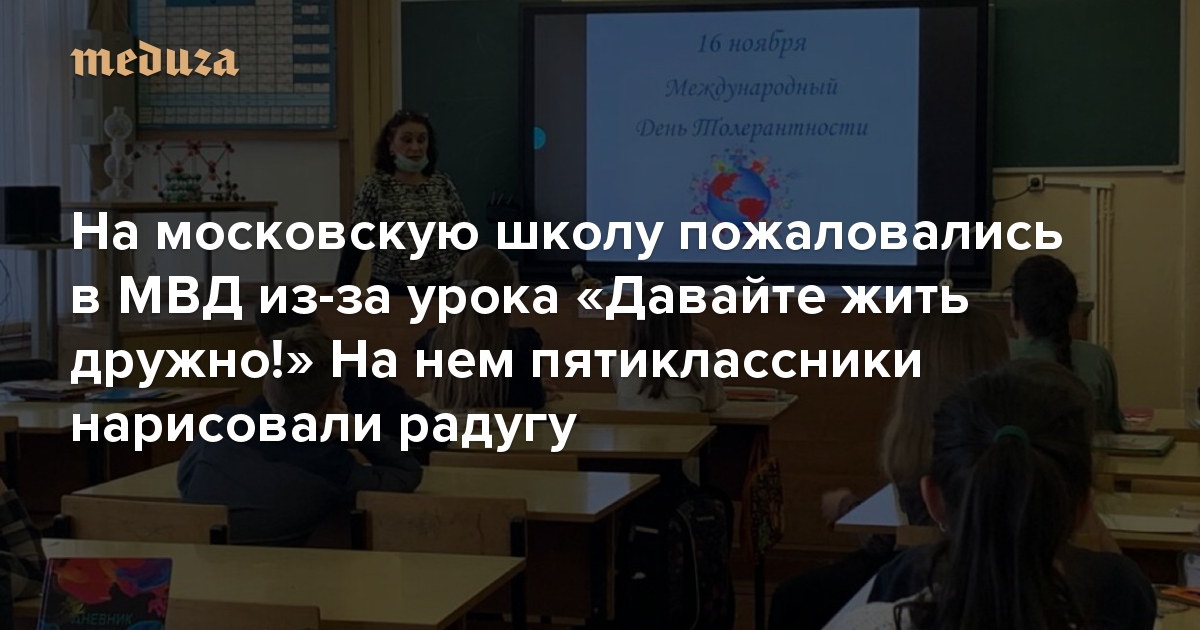 На московскую школу пожаловались в МВД из-за урока «Давайте жить дружно!» На нем пятиклассники нарисовали радугу