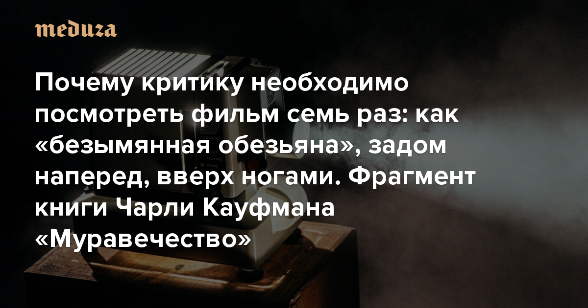 Почему критику необходимо посмотреть фильм семь раз: как «безымянная обезьяна», задом наперед, вверх ногами и другими способами Фрагмент книги режиссера Чарли Кауфмана «Муравечество»