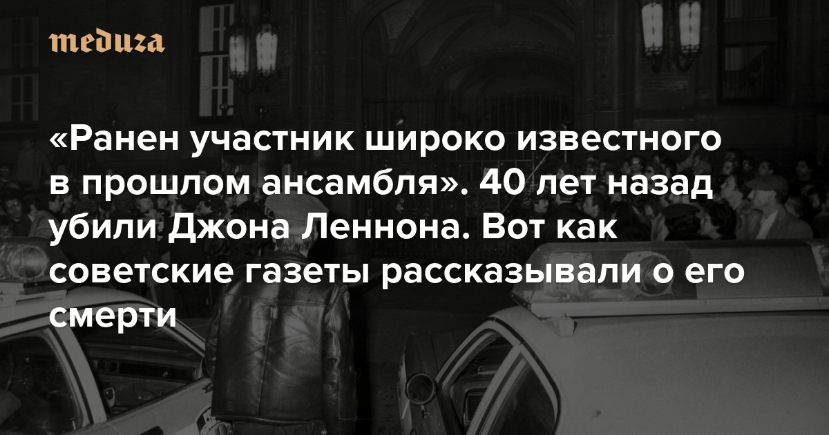 «Ранен участник широко известного в прошлом ансамбля» Ровно 40 лет назад в Нью-Йорке убили Джона Леннона. Вот как советские газеты рассказывали о его смерти