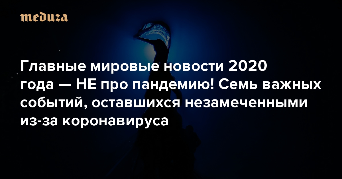По понятным причинам первые полосы всех мировых изданий в 2020 году занимала только одна тема. Но даже коронавирус не смог полностью затормозить все войны, дипломатию, научные и экономические прорывы. Во многих странах произошла масса важных событий, которые в 2021 году наверняка окажут влияние на целые регионы и даже на весь мир. По просьбе «Медузы» журналист Станислав Кувалдин нашел семь таких новостей, которые именно в 2020 году рисковали пройти в мире незамеченными.