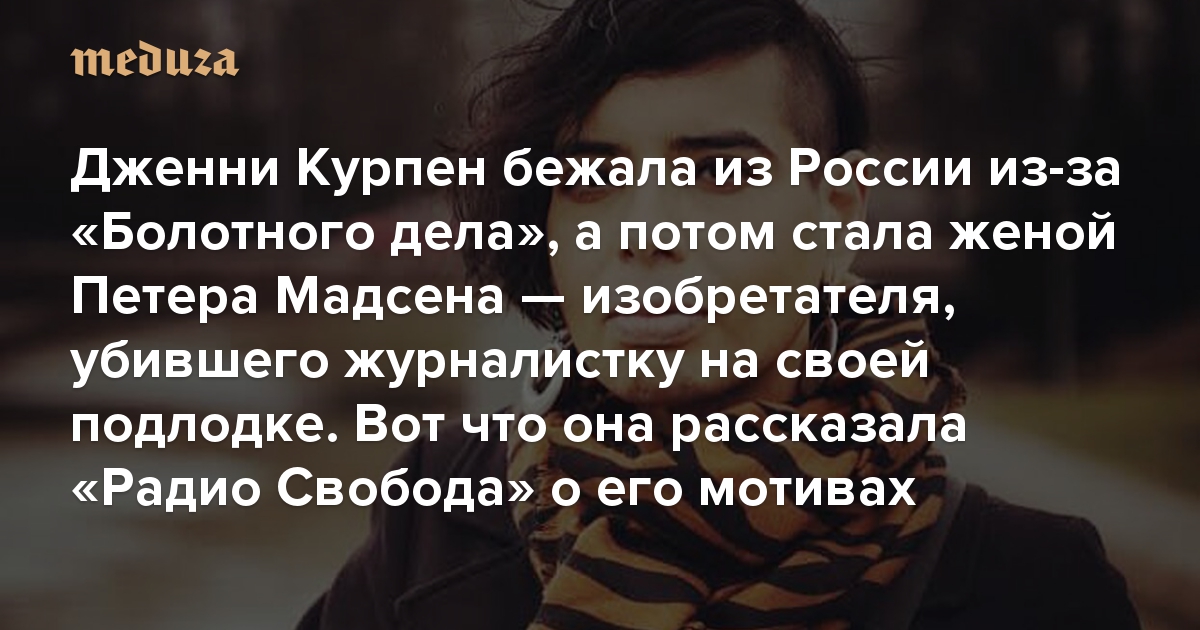 Дженни Курпен бежала из России из-за «Болотного дела», а потом стала женой Петера Мадсена — изобретателя, убившего журналистку на своей подлодке Вот что она рассказала «Радио Свобода» о его мотивах