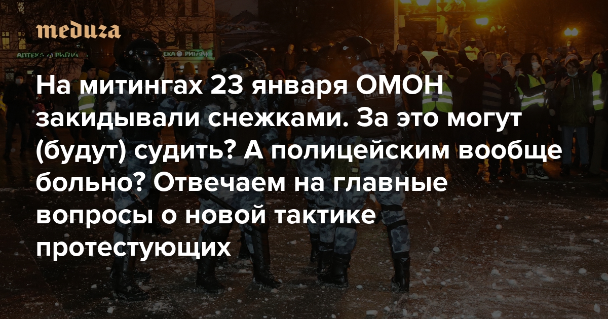 На митингах 23 января омоновцев закидывали снежками. За это могут (будут) судить? А полицейским вообще больно? Отвечаем на главные вопросы о новой тактике протестующих