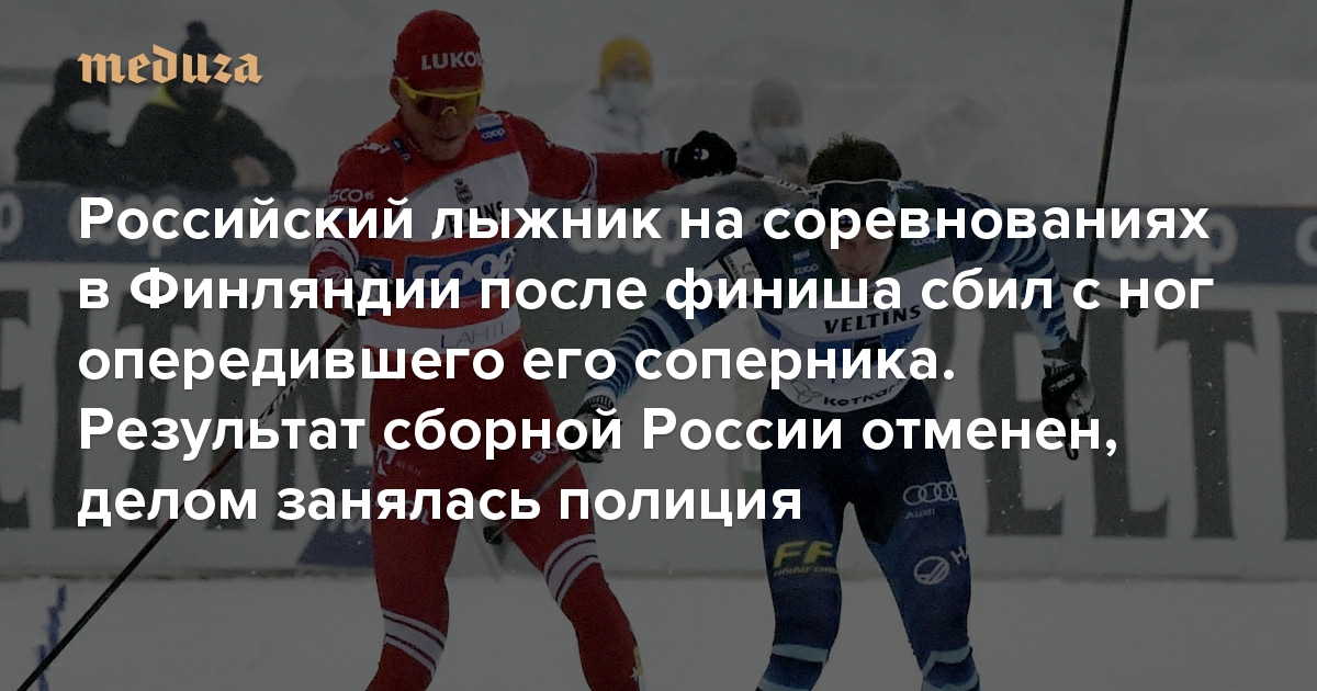 Результат первой сборной России по лыжным гонкам в эстафете в финском городе Лахти аннулировали из-за того, что после финиша Александр Большунов сбил с ног финского спортсмена Йони Мяки. Полиция начала проверку по факту возможного нападения.