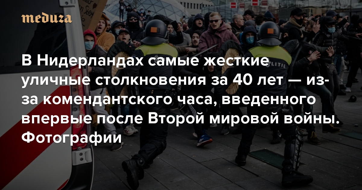 23 января во многих городах Нидерландов начались акции протеста против антиковидных ограничений — в этот день в стране вступил в силу первый со времен Второй мировой войны комендантский час. Жителям запретили покидать свои дома с 21:00 по 04:30, нарушителям грозит штраф 95 евро. Протестные акции, сопровождаемые беспорядками, проходили все выходные и продолжились в понедельник, 25 января.