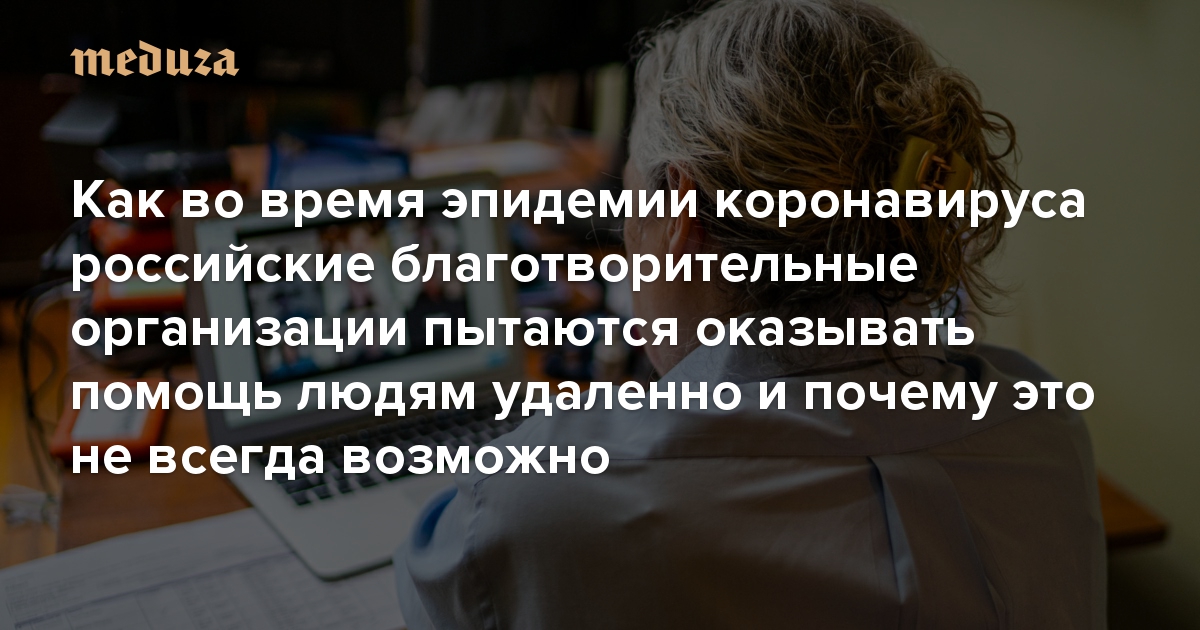 Есть работа, выполнять которую дистанционно очень сложно или почти невозможно, — например, помогать людям, нуждающимся в еде, одежде, лекарствах, медицинском уходе. Но пандемия коронавируса и связанные с ней ограничения не оставили выбора: многим благотворительным организациям пришлось тоже перейти на удаленку. Можно ли помогать людям дистанционно и бесконтактно, какую работу получилось перевести в онлайн, а какую — нет, как пандемия повлияла на российскую благотворительность — во всех этих вопросах разбиралась журналистка Евгения Корытина.