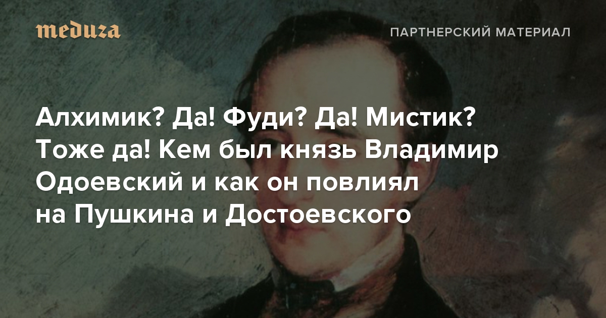Алхимик? Да! Фуди? Да! Мистик? Тоже да! Кем был князь Владимир Одоевский и как он повлиял на Пушкина и Достоевского