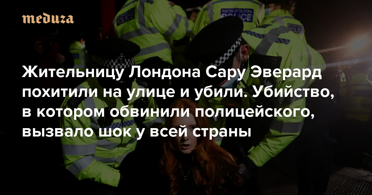 Что это за сообщение и почему оно повсюду на «Медузе»?3 марта в Лондоне пропала без вести 33-летняя Сара Эверард. Около 21:30 она в одиночестве возвращалась домой от подруги в лондонском районе Клэпхэм. Эверард искали по всей стране. 12 марта ее тело было найдено в графстве Кент. В убийстве обвинили 48-летнего полицейского из Лондона Уэйна Казинса. В Клэпхэме, где Эверард последний раз видели живой, появился мемориал в память о погибшей. Его посетила герцогиня Кембриджская Кэтрин. «Она помнит, как это — идти одной по вечернему Лондону», — прокомментировала визит пресс-служба Кенсингтонского дворца. 13 марта в разных городах Великобритании планировалось провести акции «Верните наши улицы», посвященные безопасности женщин. Однако власти запретили массовые мероприятия из-за коронавирусных ограничений. Тогда организаторы решили изменить формат акций — и в память об Эверард предложили зажечь свечу или включить фонарик в 21:30. Однако в Клэпхэме на акцию все же пришли несколько сотен человек — в итоге, несколько участниц были жестко задержаны полицией. Британские политики осудили разгон мирной акции и потребовали объяснений у правоохранительных органов.