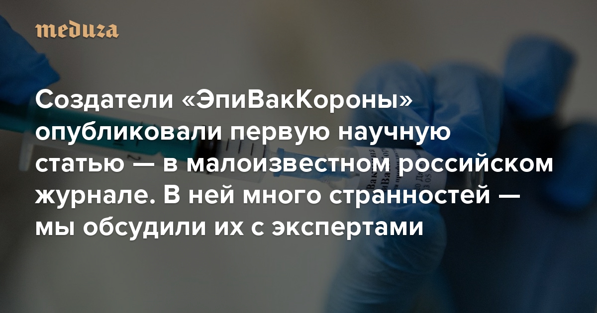 25 марта в журнале «Инфекция и иммунитет» вышла первая рецензируемая научная статья о вакцине «ЭпиВакКорона» новосибирского научного центра «Вектор». Несмотря на то, что вакцина была зарегистрирована Минздравом еще в октябре и уже активно производится, до сих пор все публичные данные о ней ограничивались лишь заявлениями на сайте Роспотребнадзора, которому подчиняется «Вектор», двумя патентами и несколькими интервью разработчиков, в том числе недавно вышедшими на «Медузе». В разговоре с нами разработчик и первый автор нынешней статьи Александр Рыжиков и заместитель гендиректора центра «Вектор» Татьяна Непомнящих обещали появление первой полноценной статьи про вакцину со дня на день — так оно и произошло. Однако статья, вопреки ожиданиям и февральским заявлениям самого Роспотребнадзора, появилась далеко не в The Lancet или The New England Journal of Medicine, а в малоизвестном российском издании «Инфекция и иммунитет». Мы ее прочитали и попросили экспертов прокомментировать публикацию.
