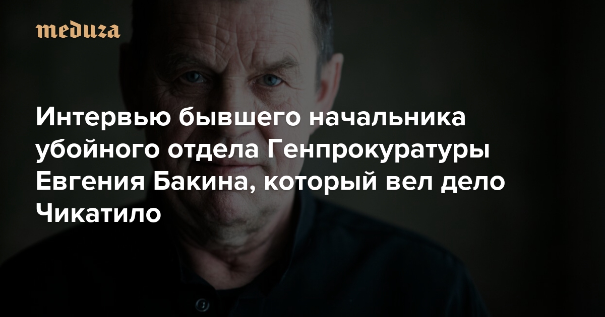 Весной 2021 года из колонии вышел «скопинский маньяк» Виктор Мохов. Освобождение такого человека — необычное событие, и Мохов сразу оказался в центре внимания. Однако сенсацией эта история стала в тот момент, когда у Мохова взяла интервью Ксения Собчак. Одновременно в России начали показывать сериал «Чикатило» Сарика Андреасяна. На фоне дискуссий по поводу обоих произведений (фильм Собчак и сериал Андреасяна) спецкор «Медузы» Максим Солопов взял интервью у специалиста по серийным преступникам — 70-летнего генерала юстиции в отставке Евгения Бакина. В 1990-е Бакин возглавлял отдел Генпрокуратуры по расследованию убийств и бандитизма, а за свою жизнь вел множество громких дел, в том числе серийных убийц Андрея Чикатило и Сергея Головкина.