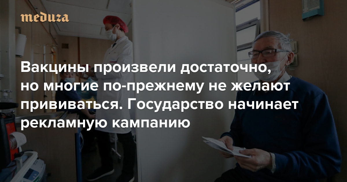 «Ролики с юмором» для молодежи. «Лирические видео» для тех, кому за 55 Государство запускает рекламную кампанию в поддержку вакцинации. Власти считают, что «Спутника» в стране уже хватает — но не все хотят прививаться