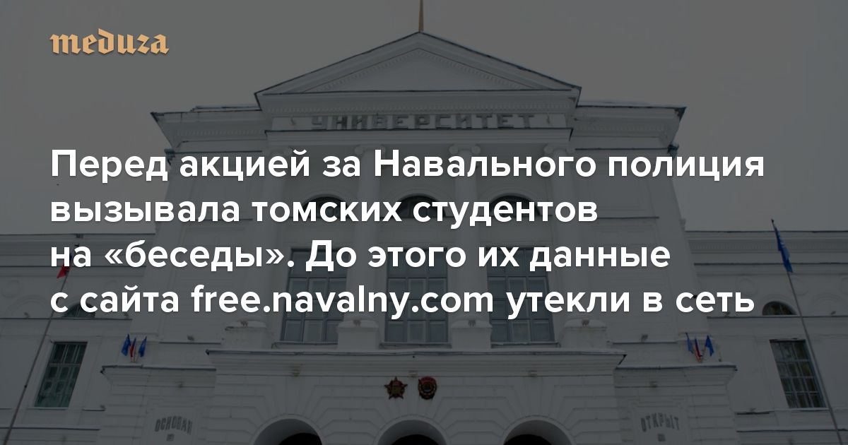 Как убедилась «Медуза», все студенты ТГУ, вызванные на личную встречу в деканат, — фигуранты одной или нескольких баз данных, сформированных на основе утечки адресов электронной почты с сайта free.navalny.com.