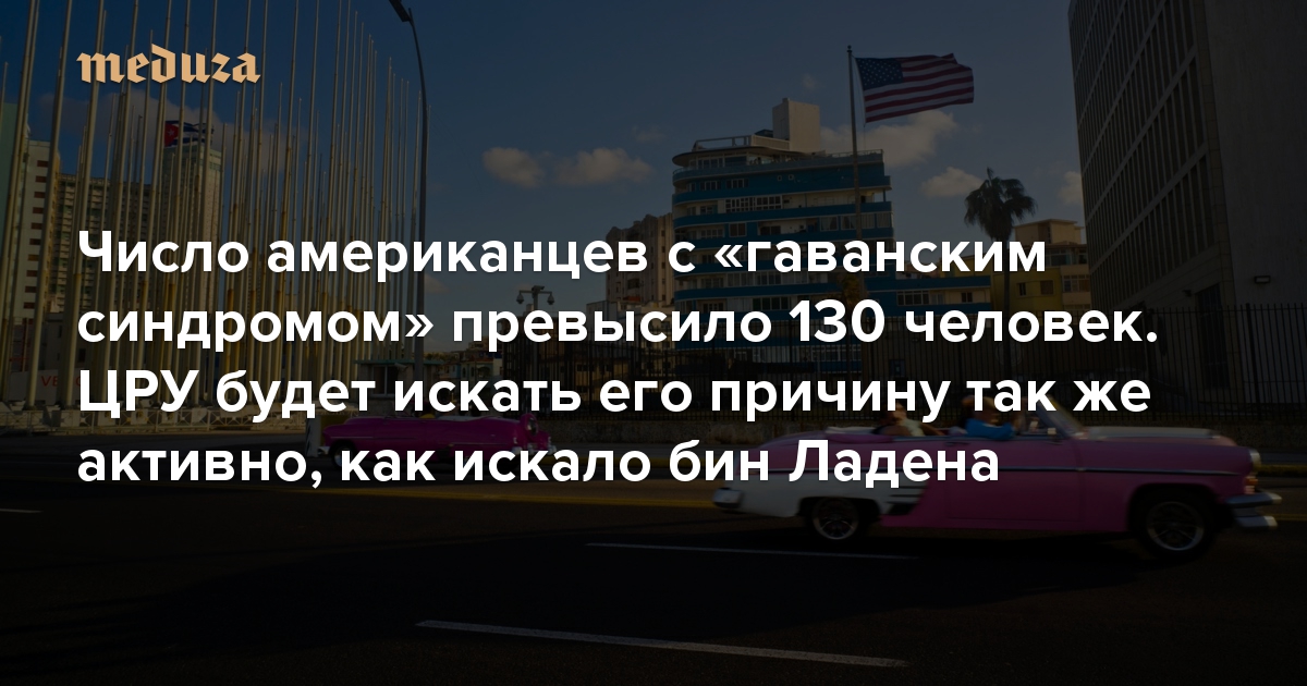 Число американцев с «гаванским синдромом» превысило 130 человек ЦРУ будет искать его причину так же активно, как искало бин Ладена. Но главный подозреваемый — по-прежнему Россия, пишет The New York Times