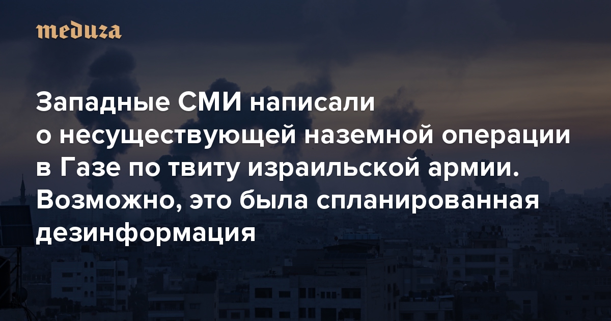 Западные СМИ написали о несуществующей наземной операции в Газе по твиту израильской армии. Возможно, это была спланированная дезинформация