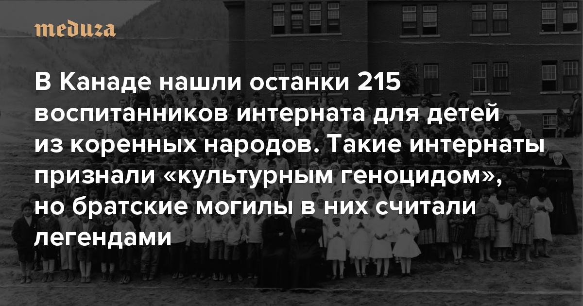 В Канаде нашли останки 215 воспитанников интерната для детей из коренных народов Несколько лет назад такие интернаты признали «культурным геноцидом». Но братские могилы в них считали легендами