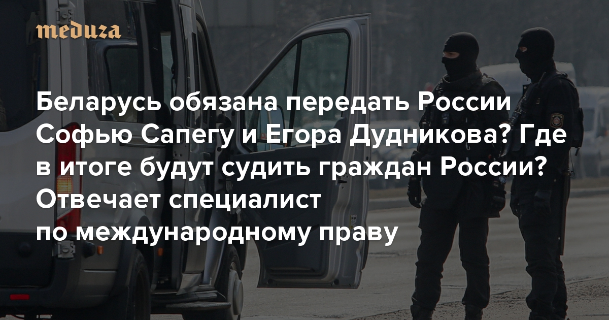 На мой взгляд, Софья Сапега и Егор Дудников не совершили ничего незаконного и во всяком случае имеют право на презумпцию невиновности. Мы до конца не знаем, в чем их обвиняют. Но есть два документа, которые регулируют многое из того, какой будет порядок суда и [возможной] передачи [их в Россию]. Это московская Конвенция СНГ о передаче осужденных к лишению свободы для отбывания наказания и минская Конвенция СНГ 1993 года. Отношения России и Беларуси [в этой сфере] регулируются именно этими документами.