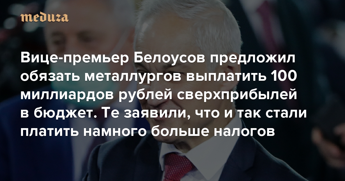 Источник в одной из крупных компаний в беседе с «Медузой» выразил мнение, что «именно он [Белоусов] пытается „нахлобучить“ металлургов».