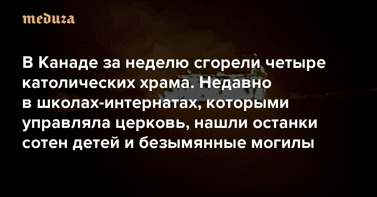 В Канаде за неделю сгорели четыре католических храма Недавно в школах-интернатах, которыми управляла церковь, нашли останки сотен детей и безымянные могилы