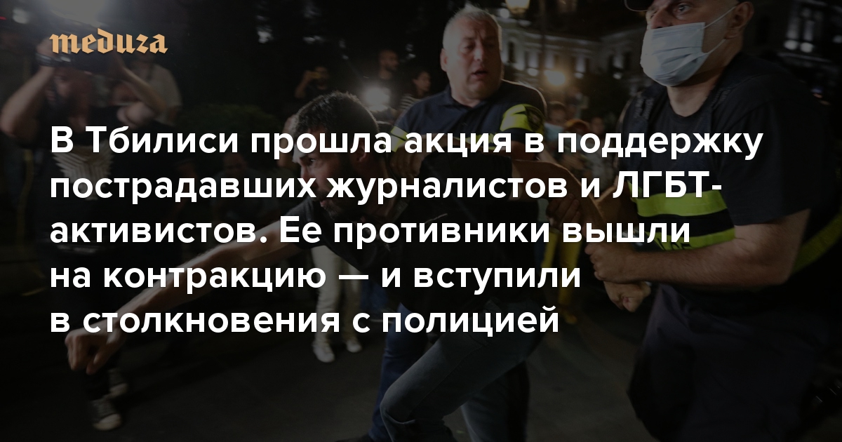 В Тбилиси прошла акция в поддержку пострадавших журналистов и ЛГБТ-активистов. Ее противники вышли на контракцию — и вступили в столкновения с полицией