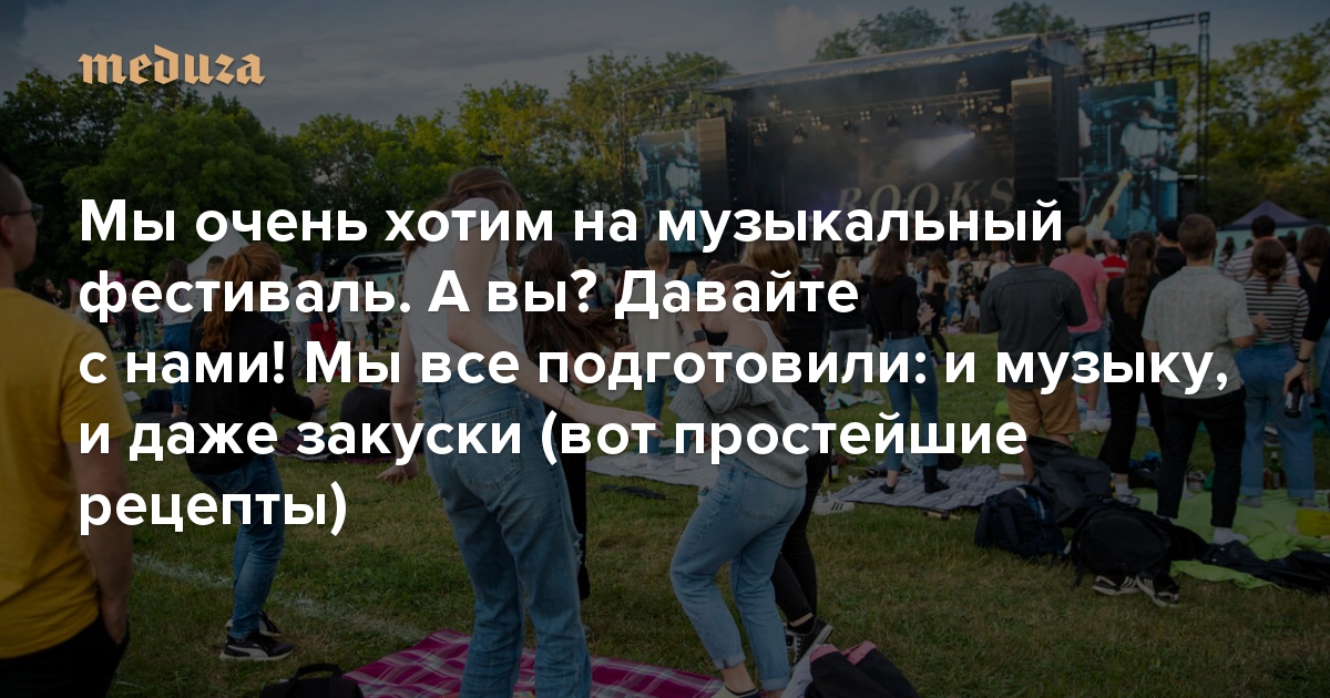 Музыкальный марафон «Агенты лета» в поддержку «Медузы» в самом разгаре, и из исполнителей, представивших свои новые композиции в этом проекте, уже можно составить программу отличного фестиваля. Из-за коронавирусных ограничений в этом году реальные музыкальные фестивали в России вряд ли состоятся, поэтому вы можете устроить его себе сами. Возьмите блютус-колонку, выйдите на природу с друзьями, соберите корзинку для пикника — и включайте плейлист «Агентов лета». А редактор отдела расследований и по совместительству главный кулинар «Медузы» Алексей Ковалев (у него есть свой блог про еду) подскажет вам пару рецептов.