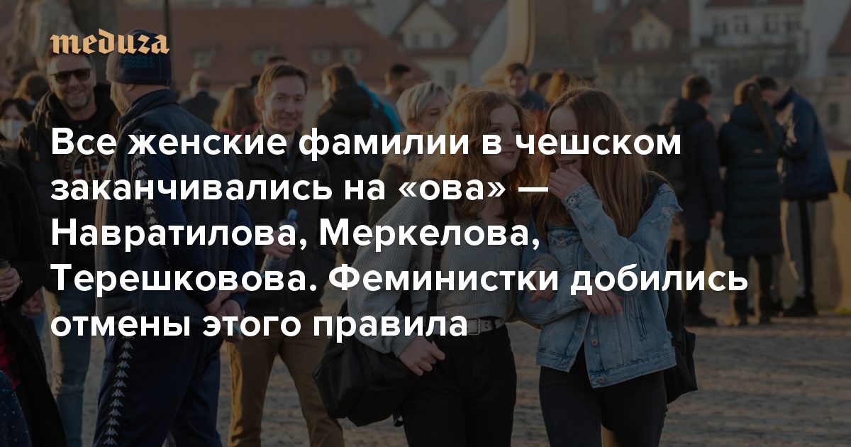 Все женские фамилии в чешском заканчивались на «ова» — Навратилова, Меркелова, Терешковова. Феминистки считали это правило дискриминацией — и добились его отмены