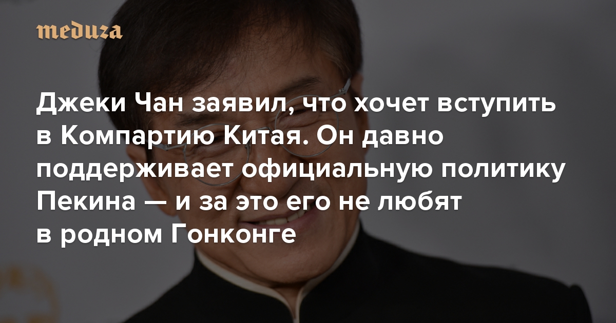 Джеки Чан заявил, что хочет вступить в Компартию Китая Он давно поддерживает официальную политику Пекина — и за это его не любят в родном Гонконге