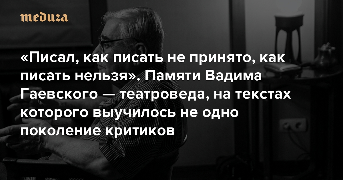 «Писал, как писать не принято, как писать нельзя» Памяти Вадима Гаевского — театроведа, на текстах которого выучилось не одно поколение критиков