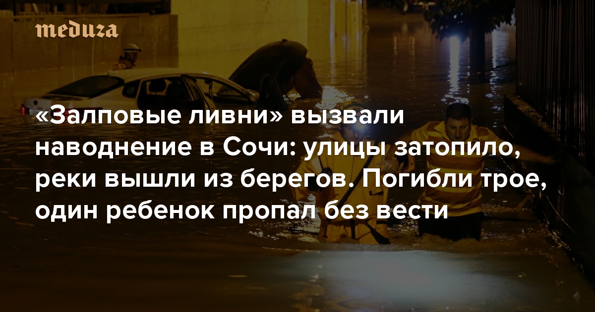 «Залповые ливни» вызвали наводнение в Сочи: улицы затопило, реки вышли из берегов. Погибли трое, один ребенок пропал без вести