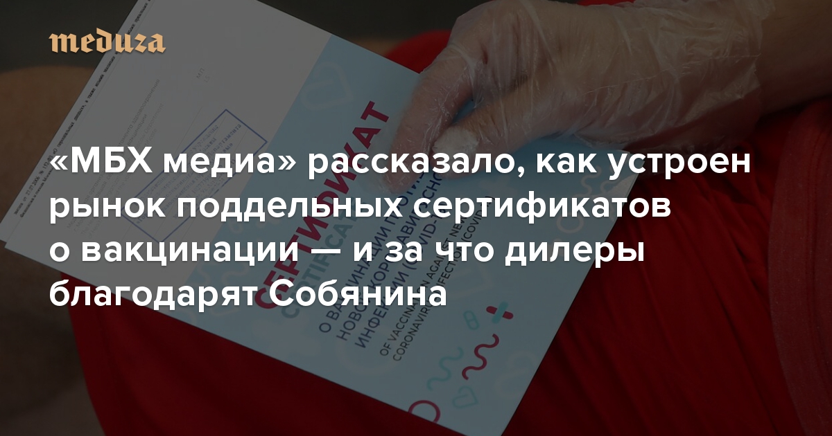 Зарабатывали по три миллиона в день «МБХ медиа» рассказало, как устроен рынок поддельных сертификатов о вакцинации — и за что дилеры благодарят Собянина