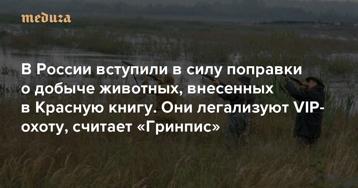 В России разрешили добычу животных, занесенных в Красную книгу (в «исключительных случаях»). Это легализует VIP-охоту, считает «Гринпис» Среди авторов поправок — участник «Клуба горных охотников»