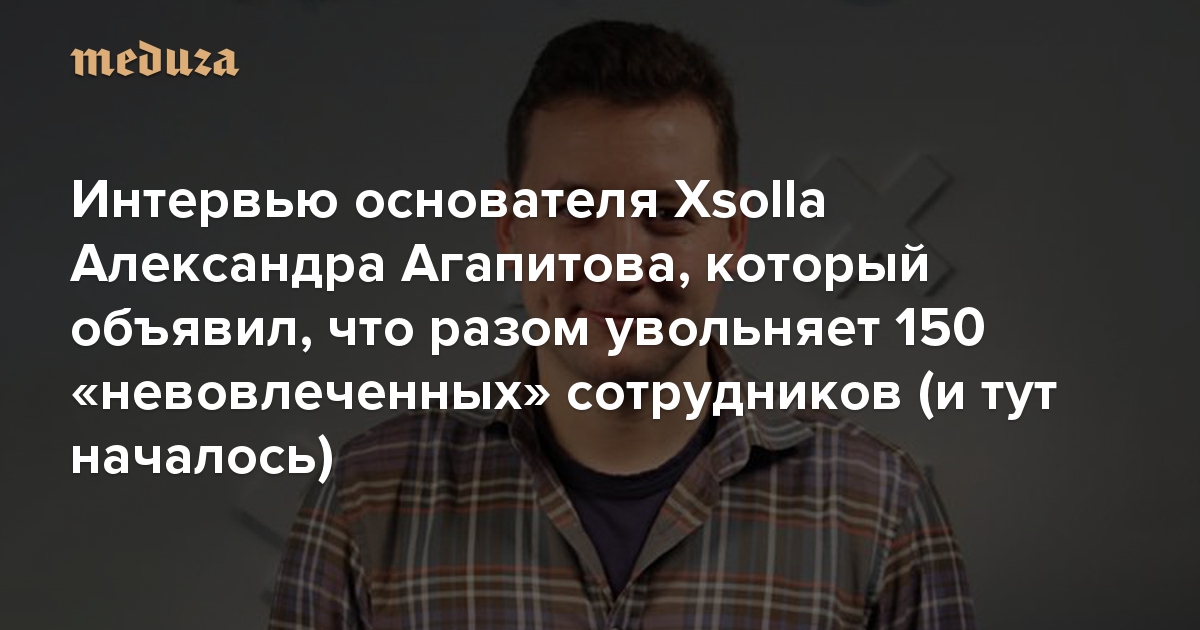 Что это за сообщение и почему оно повсюду на «Медузе»?4 августа в интернете разошелся скриншот письма Александра Агапитова, основателя и гендиректора компания по обработке платежей в видеоиграх Xsolla, в котором он сообщил, что увольняет около 150 человек — почти треть всех сотрудников компании. «Команда биг дата» проанализировала активность этих сотрудников в рабочих сервисах и признала их «невовлеченными и малопродуктивными», говорится в письме. Позже Агапитов назвал основной причиной увольнений тот факт, что Xsolla, штаб-квартира которой находится в Лос-Анджелесе, а главный офис разработки — в Перми, перестала показывать 40-процентный рост выручки. Спецкор «Медузы» Анастасия Якорева расспросила Александра Агапитова о том, как работает «команда биг дата», почему он решил уволить людей с помощью «алгоритмического решения» и почему считает эту историю хорошим пиаром для Xsolla.