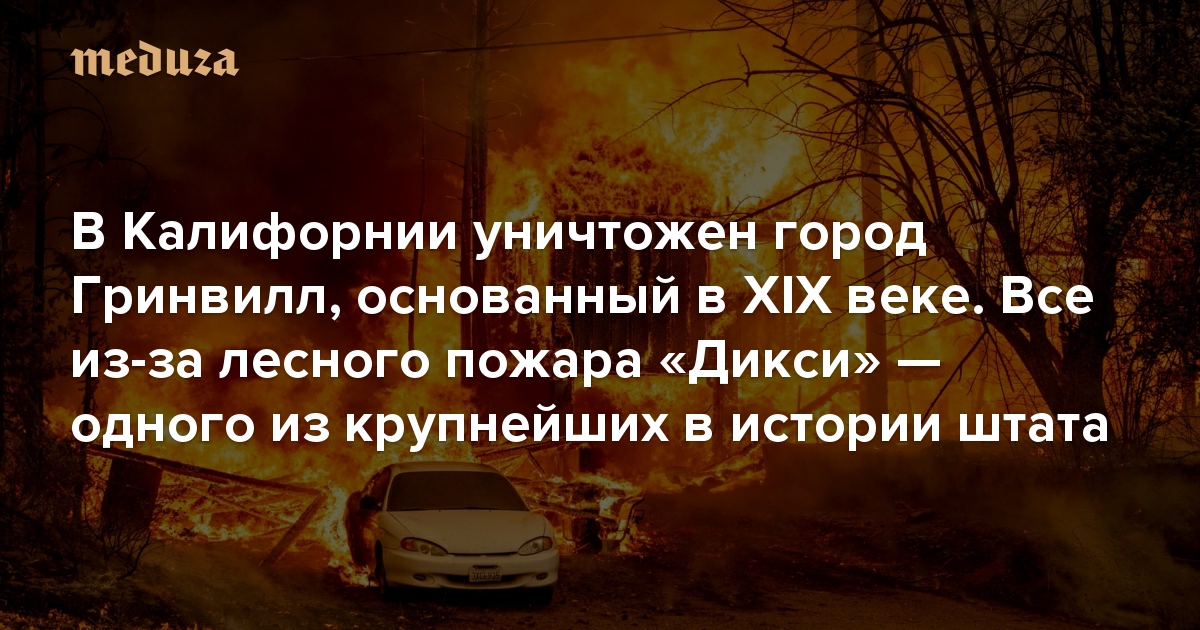 На севере и западе США зафиксировано 100 активных природных пожаров, из них 12 в Калифорнии. Крупнейшим на территории штата является пожар «Дикси», который начался 14 июля — вероятно, из-за дерева, упавшего на линию электропередачи. Пожар охватил территорию, превышающую 1700 квадратных километров, и занял третье место в списке самых обширных лесных пожаров в истории Калифорнии. На этой неделе «Дикси» практически уничтожил Гринвилл — городок примерно на тысячу жителей, который был основан в северной Калифорнии в XIX веке во время золотой лихорадки. К жертвам пожар пока не привел. Вот как выглядят пострадавшие от огня районы.