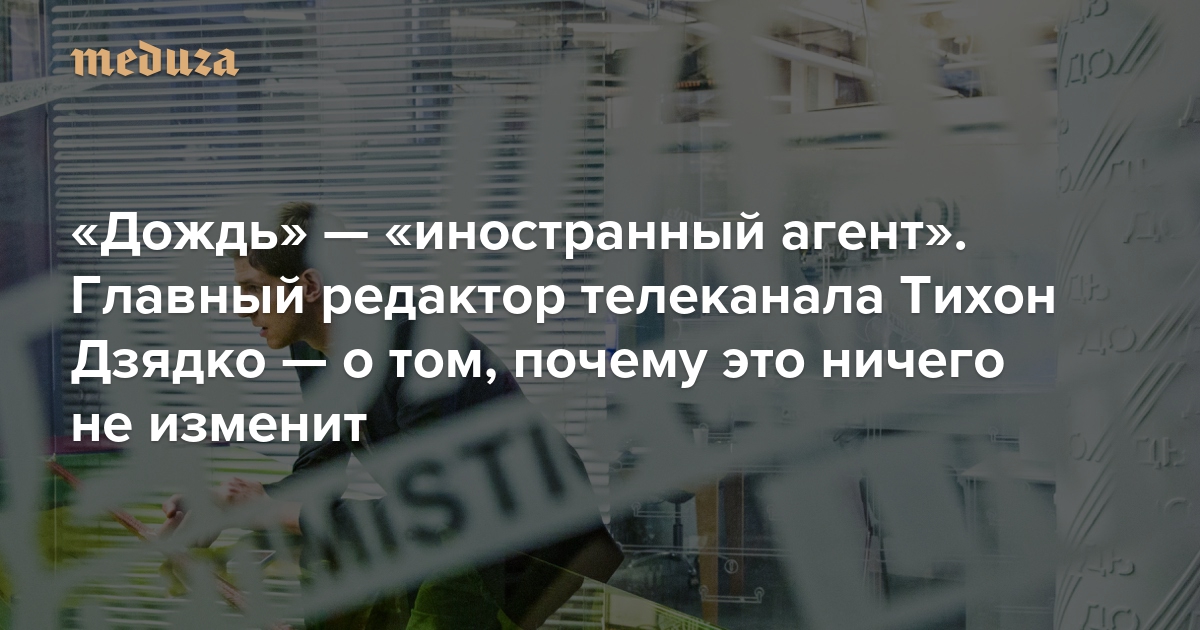 «Настрой — выйти в эфир и продолжать работать так, как работали» «Дождь» — «иностранный агент». Главный редактор телеканала Тихон Дзядко — о том, почему это ничего не изменит