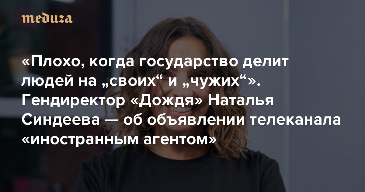 «Плохо, когда государство делит людей на „своих“ и „чужих“». Гендиректор «Дождя» Наталья Синдеева — об объявлении телеканала «иностранным агентом»