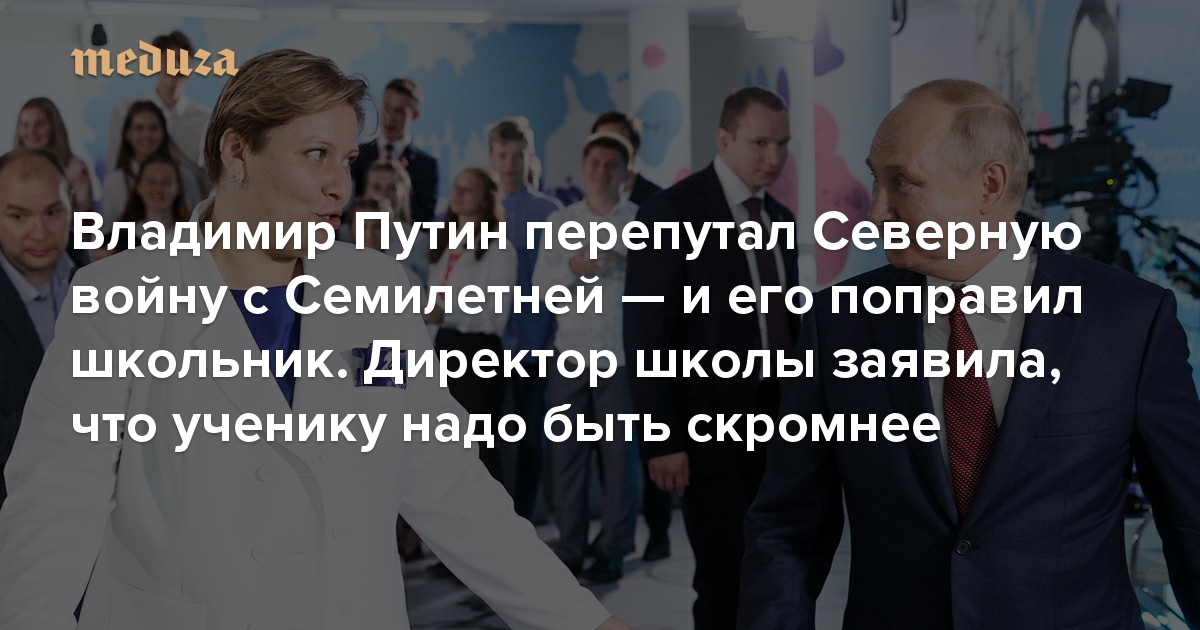 Владимир Путин перепутал Северную войну с Семилетней — и его поправил школьник. Директор школы заявила, что ученику надо быть скромнее
